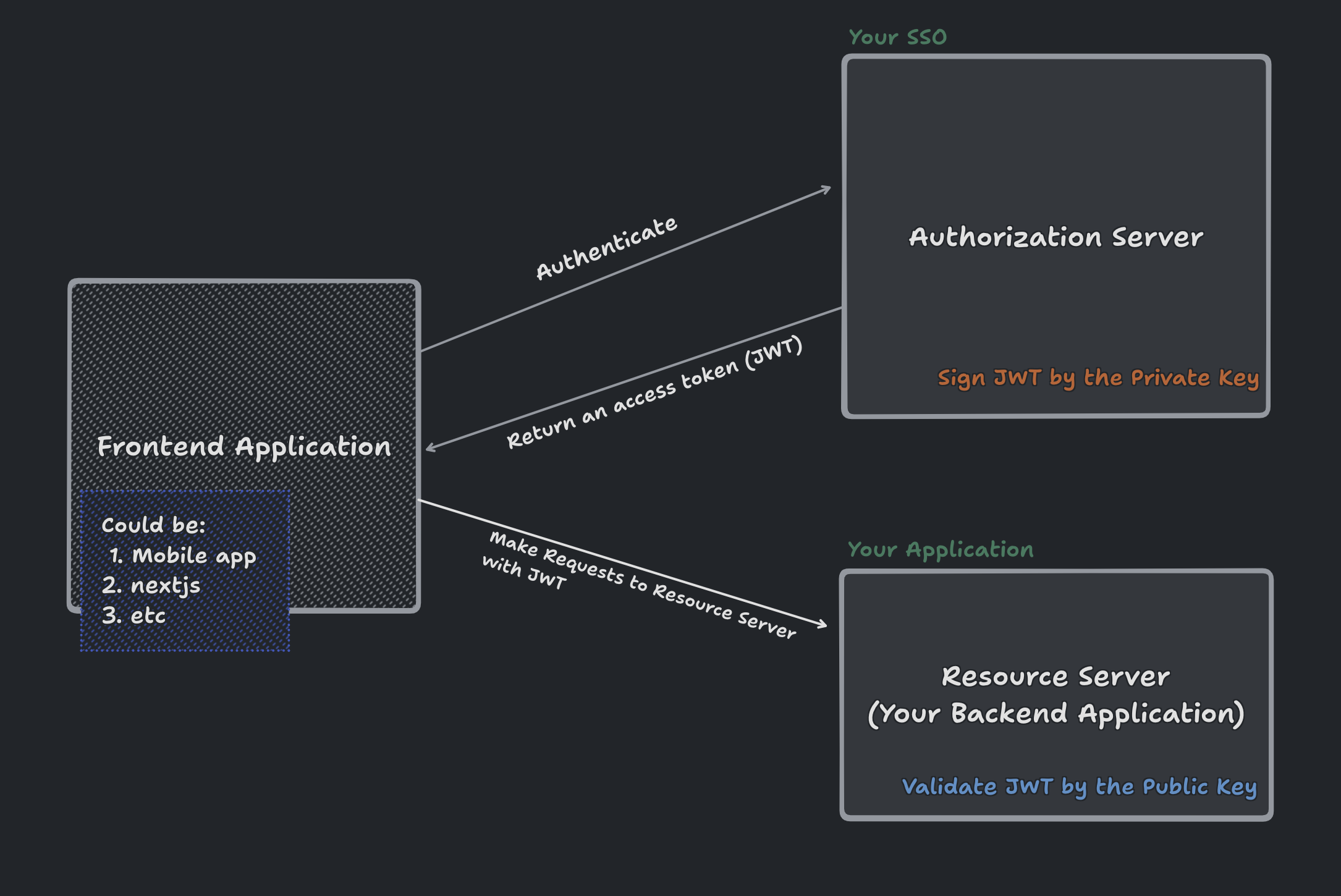 此包提供了一个简单的自定义认证保护器,用于Laravel,使用由OAuth服务器提供的或任何使用JWT的任何类型的SSO提供的JWT。以下图表示明了流程。