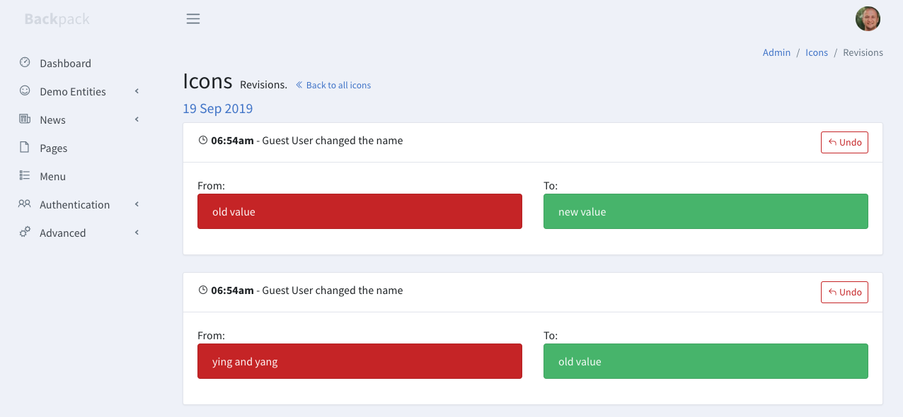 为你的 Backpack CRUD 添加 venturecraft/revisionable 接口,以便管理员可以