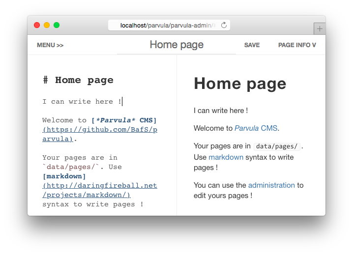您可以在 yoursite.com/admin(管理URL可以在 plugins/Admin/config.php 中编辑)在线编辑页面。