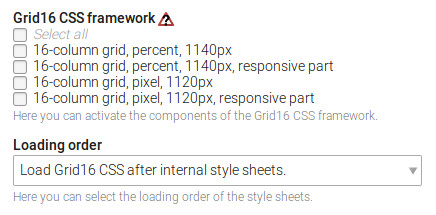 Contao 4 grid16 插件包,为 Contao 4 的布局 CSS 框架添加了一个响应式的 16 列像素/百分比网格,网格尺寸为 1120px/1140px。