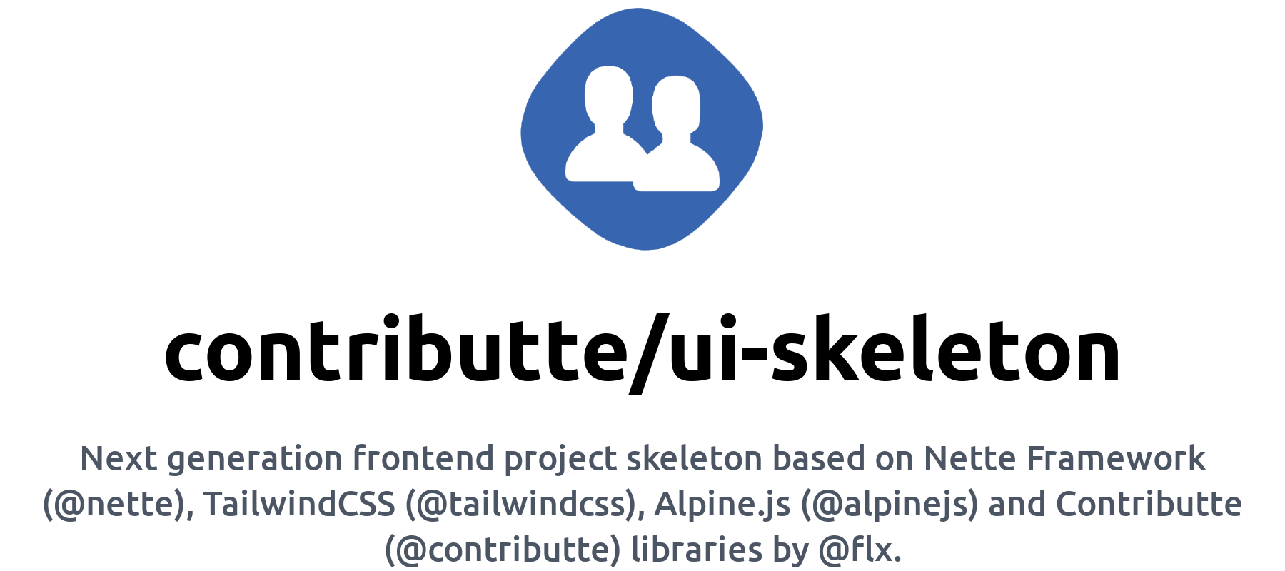 基于Nette框架 (@nette)、TailwindCSS (@tailwindcss)、Alpine.js (@alpinejs) 和 Contributte (@contributte) 库的下一代前端项目骨架,由 @f3l1x 提供。