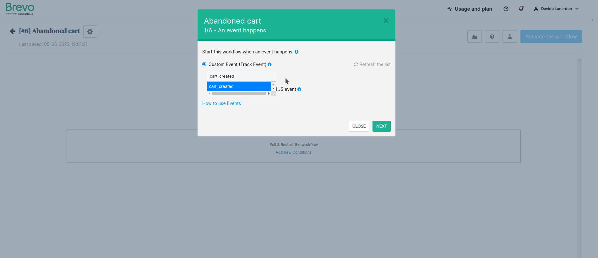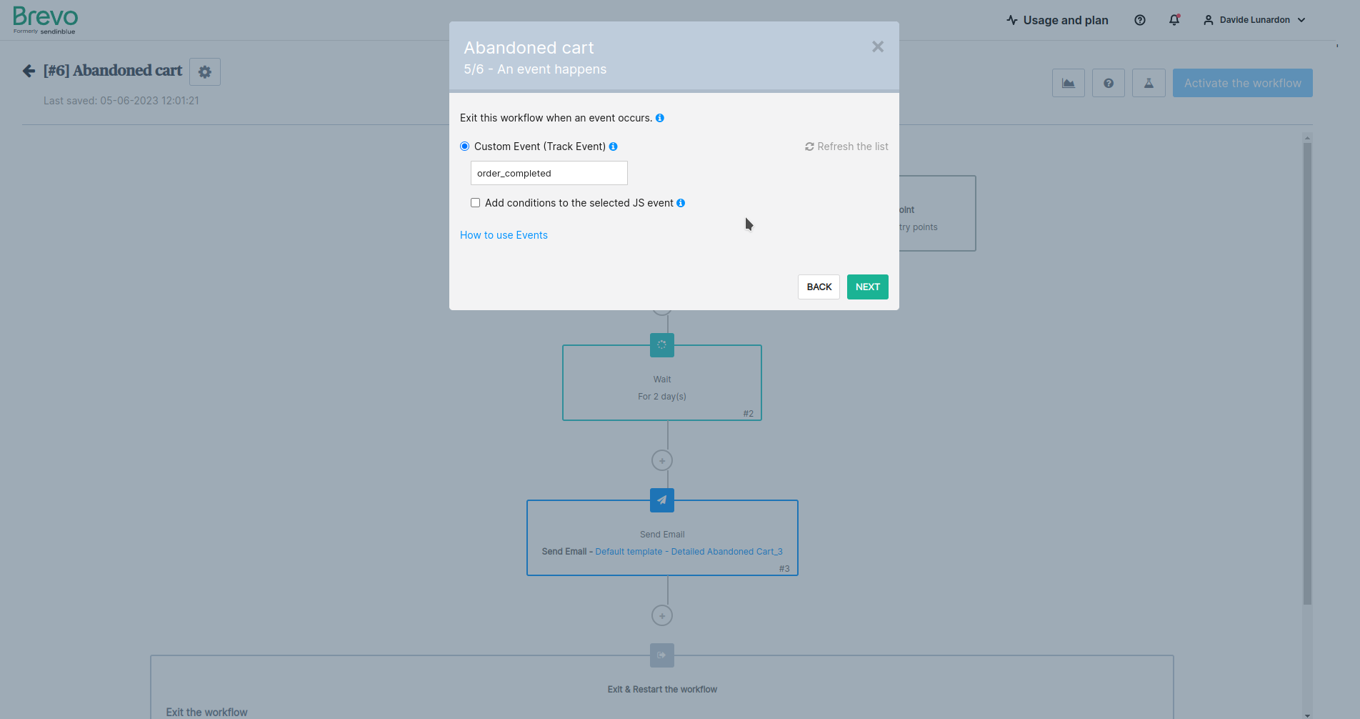 一旦启用,您需要在Brevo上创建“购物车遗弃”自动化。