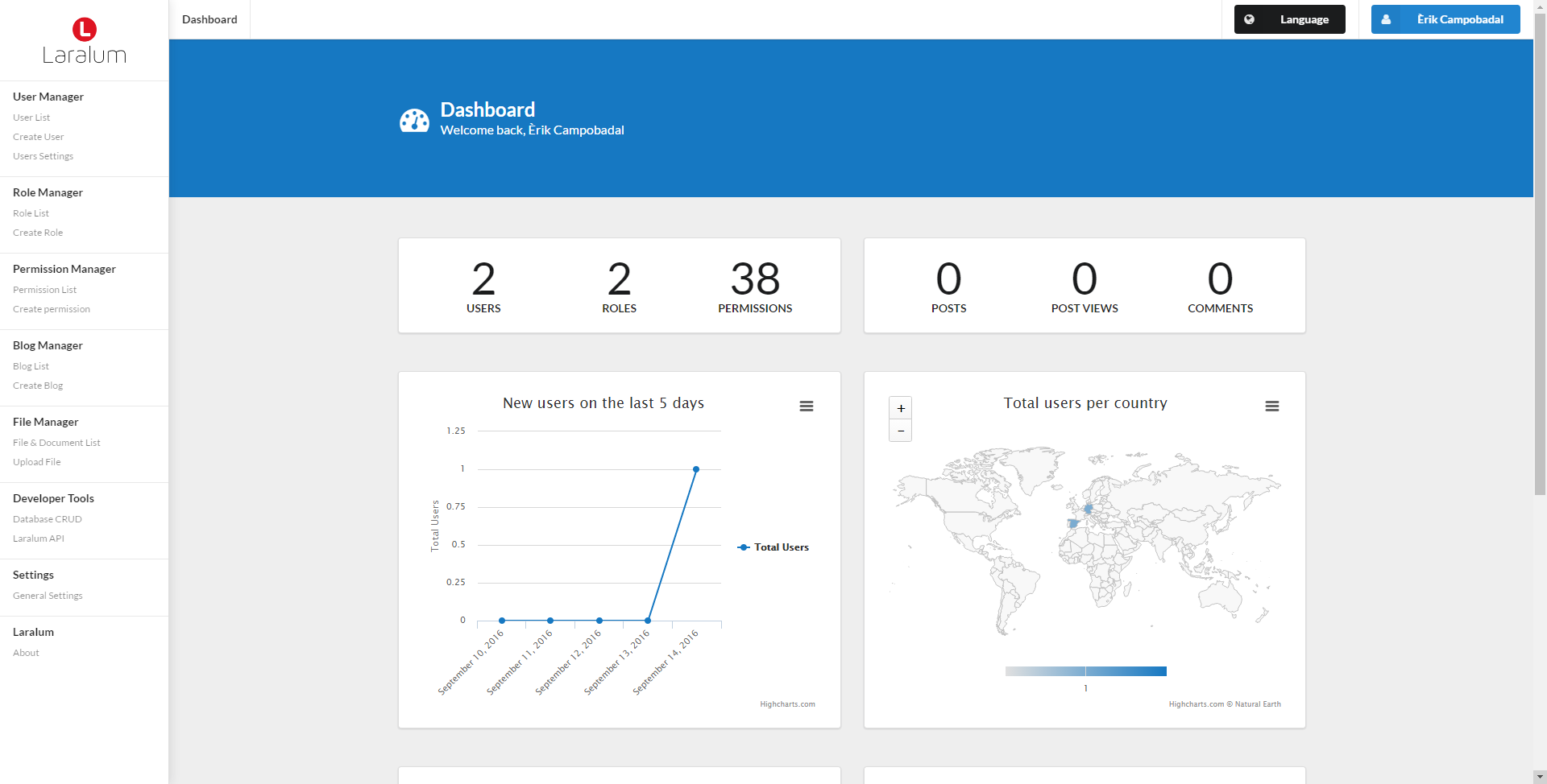 Laralum 目前正处于非常活跃的开发中,我们很高兴地宣布,不久我们将有一个非常适合生产的酷炫 Laravel 5.4 管理面板!