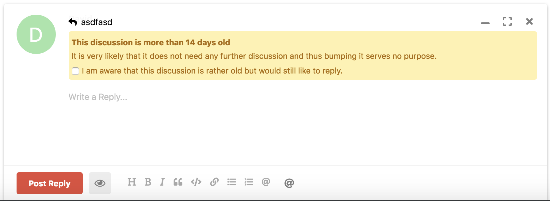 这是一个Flarum扩展,用于在necrobumping旧讨论前发出警告。