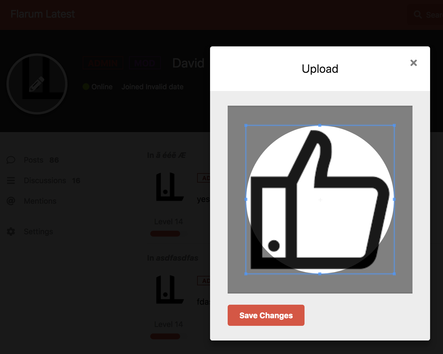 这是一个 Flarum 扩展。上传个人头像时允许裁剪。