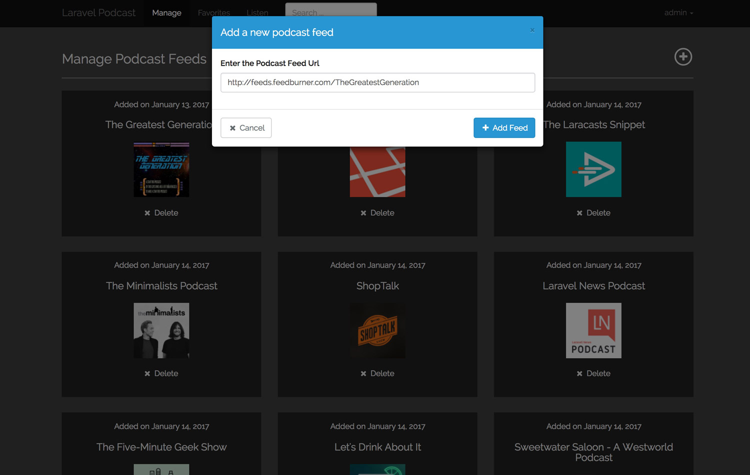 Laravel Podcast Manager 是一个针对 Laravel 5.3+ 的完整播客管理器包,它允许您管理您最喜欢的播客的 RSS 源,并通过无缝的用户界面收听播客。