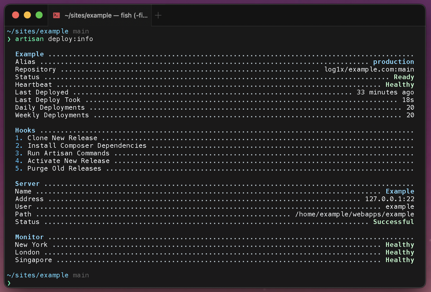 您也可以使用artisan deploy:info命令获取有关项目的详细信息