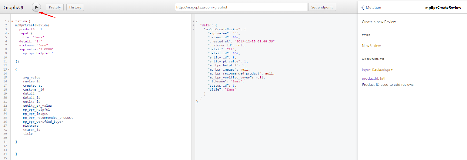 - 要查看 Mageplaza 优质产品评论 GraphQl 的支持查询,您可以在右上角查看