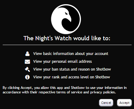 请——始终仔细查看应用程序、网站或社区请求的信息,并确保您信任他们,并且授予他们访问权限。随着这项技术的发布,第三方网站不应要求您提供 Shotbow 密码——Shotbow 员工也永远不会要求您提供密码。