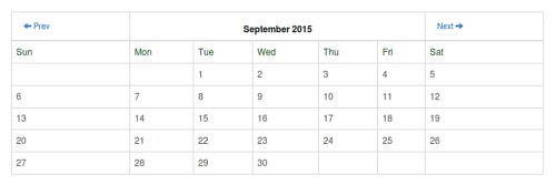 ->setDayLabels(['Sun', 'Mon', 'Tue', 'Wed', 'Thu', 'Fri', 'Sat']) // Set week day names