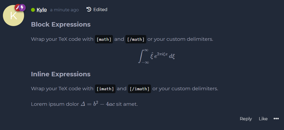 flarum/mentions扩展集成,以便您可以选中并引用表达式。 - 在预览模式下工作。