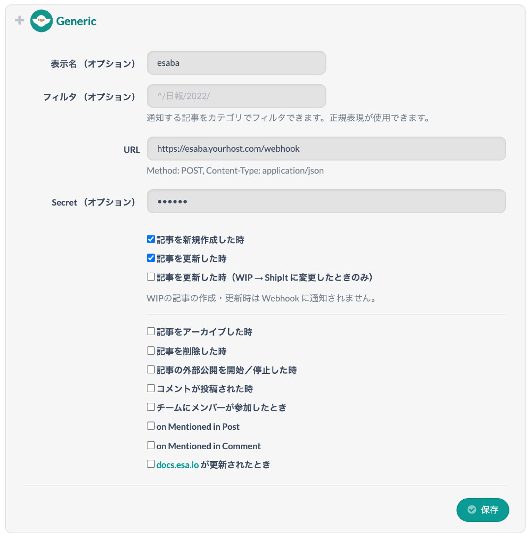 使用 esa Generic Webhook,可以在文章在esa.io上创建/更新时自动更新esaba侧的缓存。